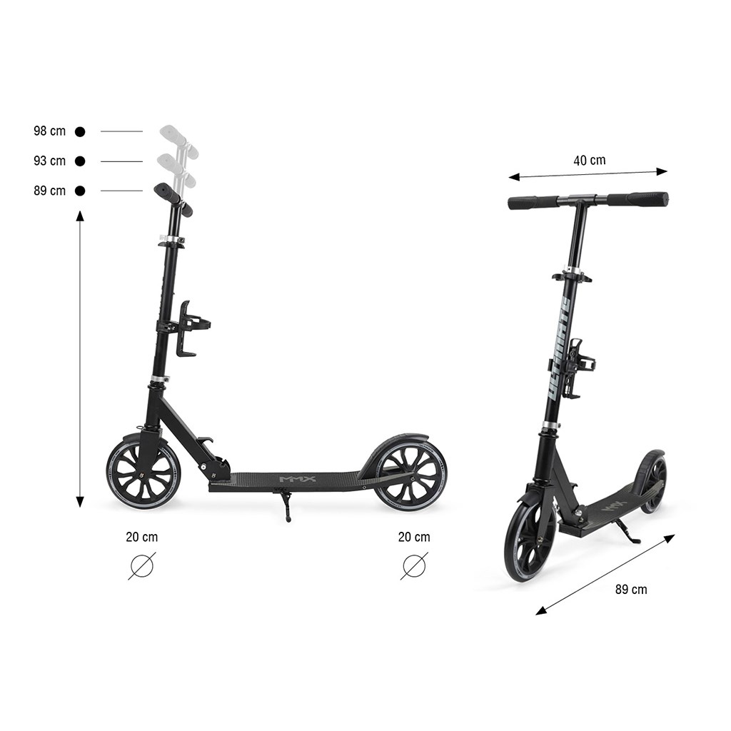 Rozmery kolobežky: 89 × 40 × 98 cm