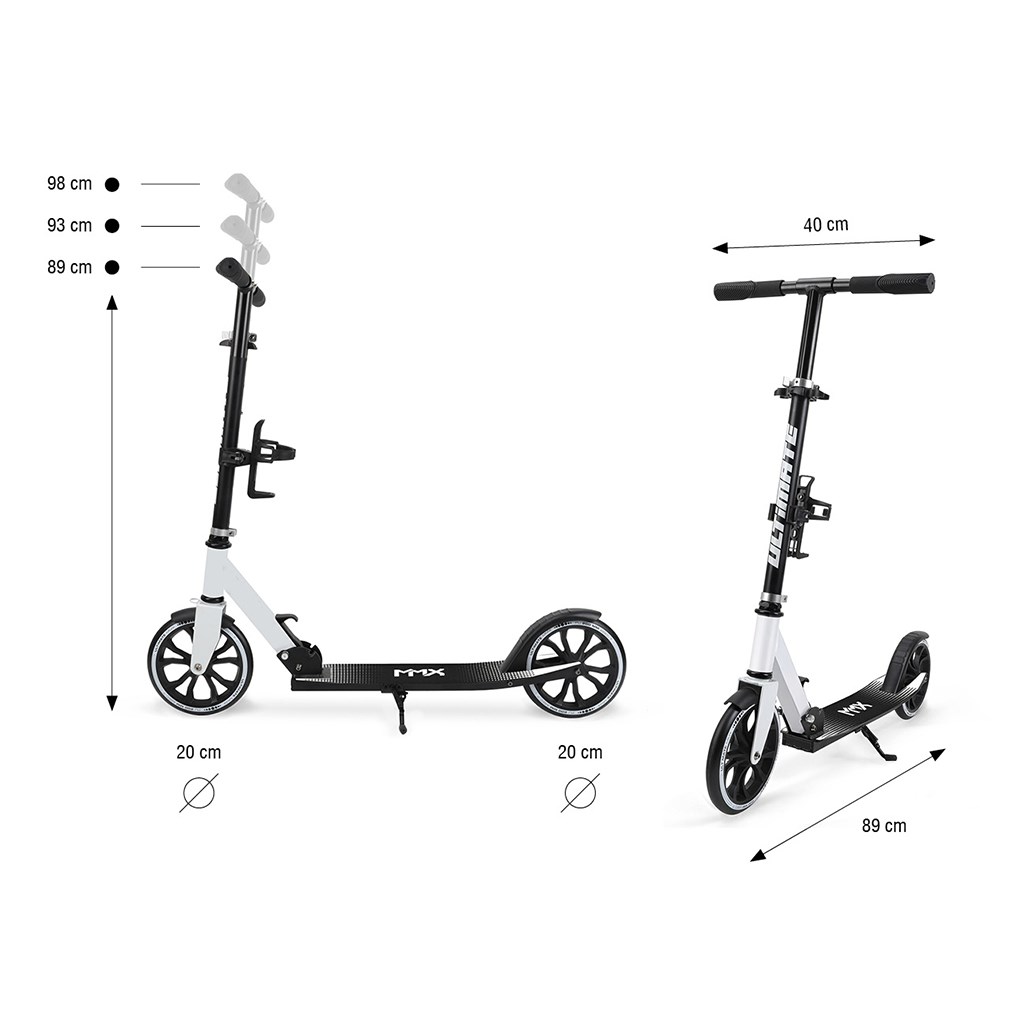 Rozmery kolobežky: 89 × 40 × 98 cm