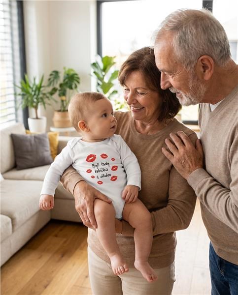 Detské body s potlačou New Baby Byli tady babička s dědou