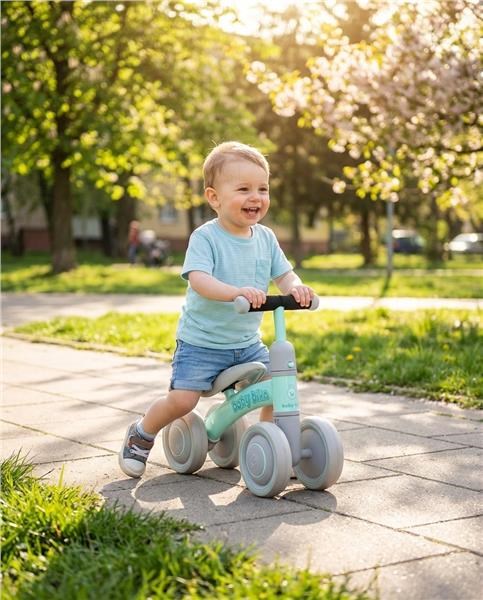 Detské odrážadlo Baby Bike je určené tým najmenším pretekárom a závodníkom. Vďaka špeciálne navrhnutému rámu a veľmi nízkej hmotnosti je Baby Bike vhodný pre deti od 1 roka. Je ideálny v čase, keď sa dieťa učí držať rovnováhu a koordináciu pohybov celého tela. Je tou najlepšou alternatívou pre bicykel s bočnými kolieskami, pretože neskoršia jazda na klasickom bicykli bude oveľa jednoduchšia. Vďaka použitiu dvojitých kolies a pevného oceľového rámu je stabilné a bezpečné. Penové, ergonomicky tvarované sedadlo je ozdobené pekným obrázkom a je príjemne mäkučké. Baby Bike má blokádu riadidiel, takže sa nemusíte obávať nekontrolovaného pádu, keď sa váš malý športovec začne učiť manévrovať. Dvojité penová kolieska skvele absorbujú nerovnosti a poskytujú perfektnú priľnavosť na všetkých povrchoch.