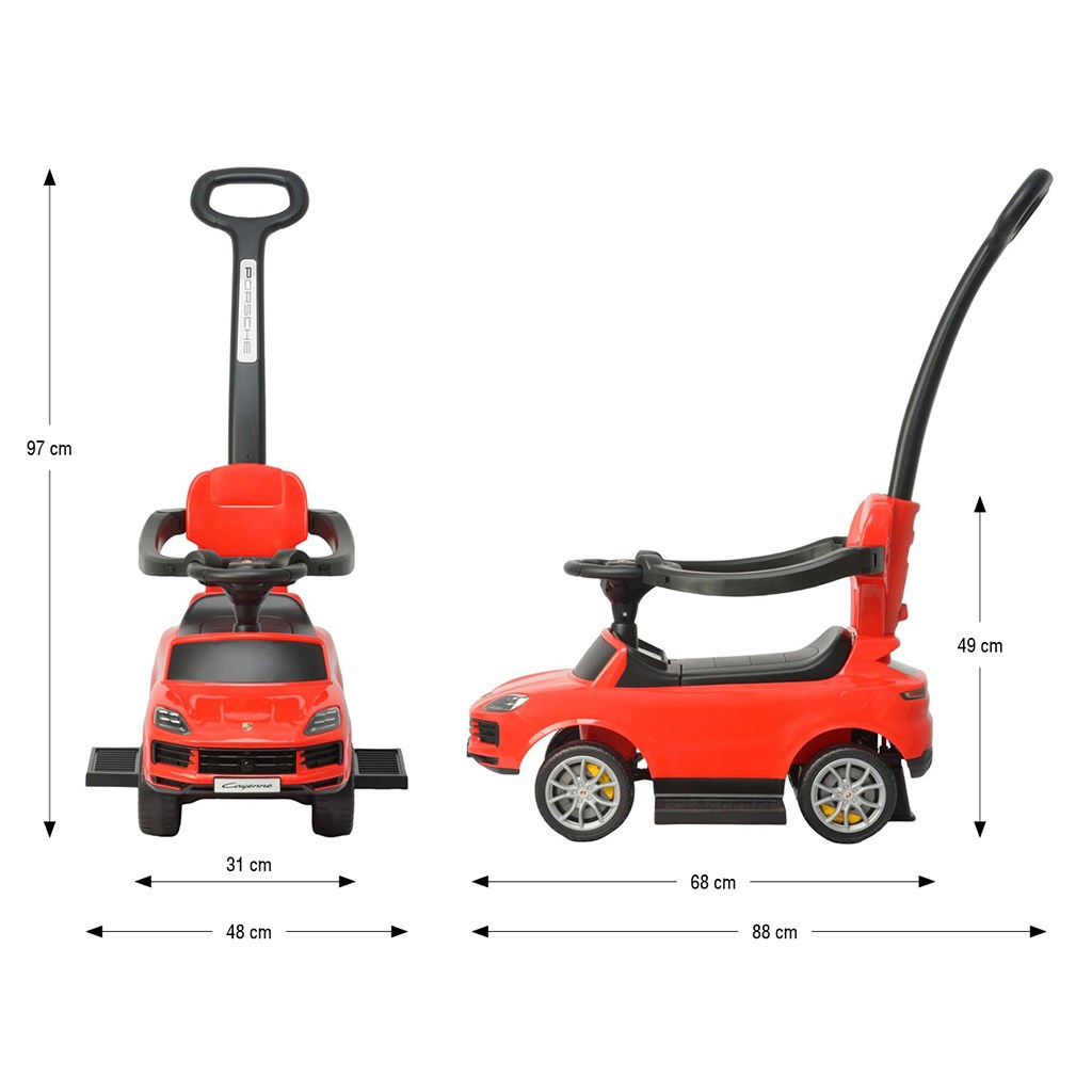 Rodičia často hľadajú odrážadlo, ktoré zabezpečí dieťaťu stabilitu a bezpečnosť už od prvých pokusov o jazdu. Model Porsche Cayenne je ideálny ako odrážadlo pre deti 12–36 mesiacov.