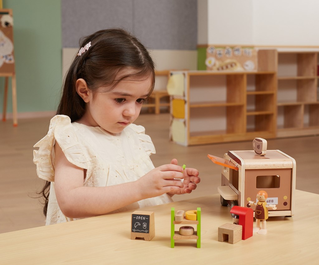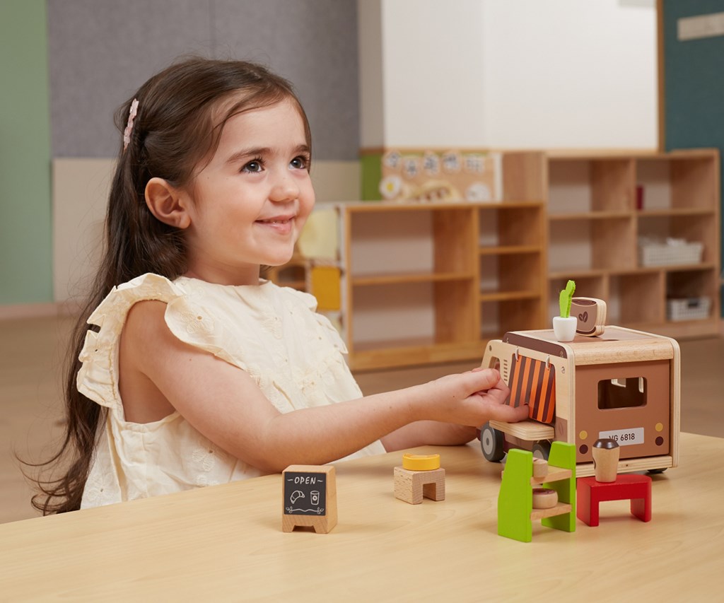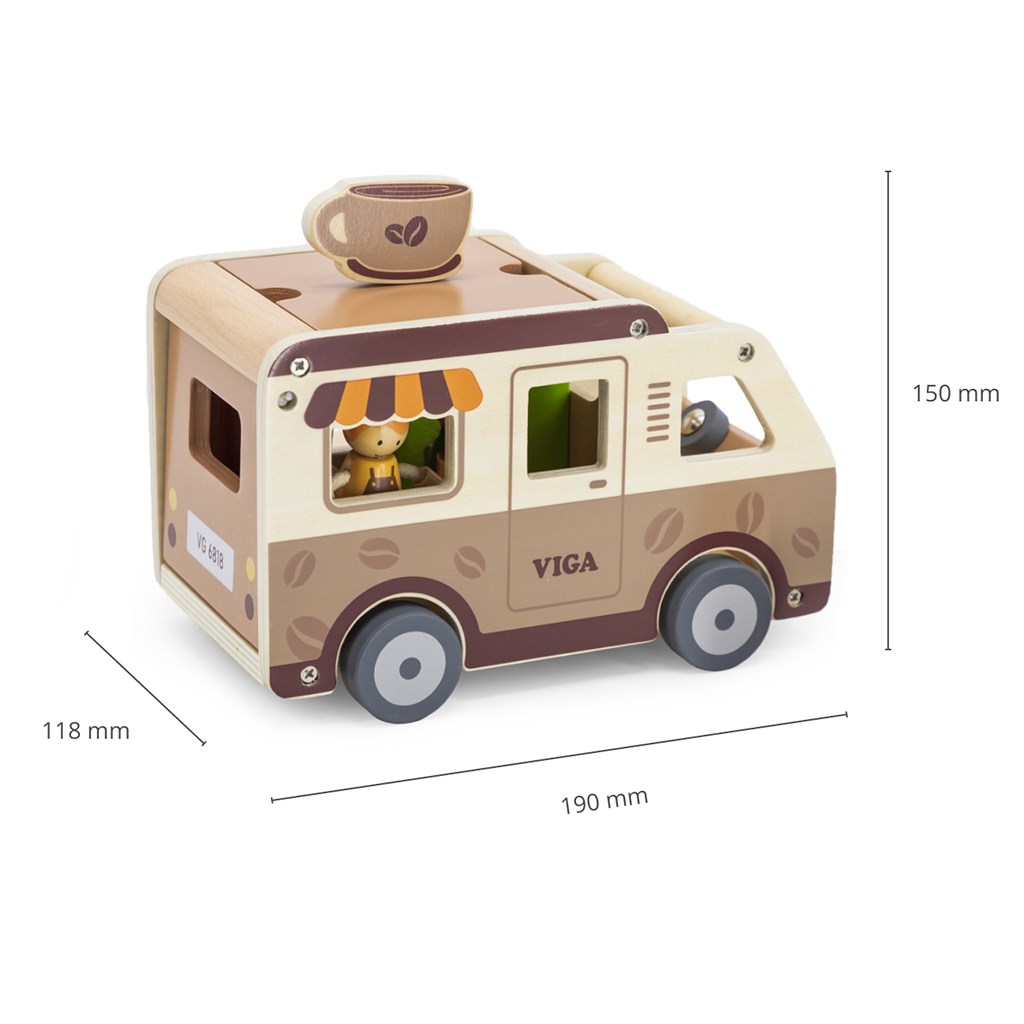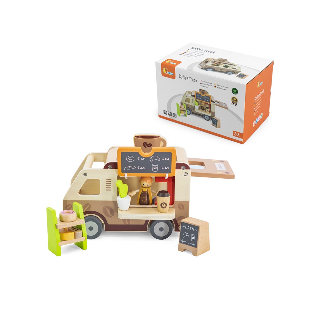 Pevná drevená konštrukcia a starostlivo zvolené pastelové farby použitím netoxických farieb robia hračku nielen esteticky príťažlivou, ale aj bezpečnou pre najmenších. Súprava je navrhnutá s ohľadom na rozvoj fantázie, manuálnych zručností a sociálnych schopností detí a ponúka hodiny tvorivej zábavy. Perfektná pre deti, ktoré milujú dobrodružstvo a snívajú o vlastnej mobilnej kaviarni na kolieskach.
