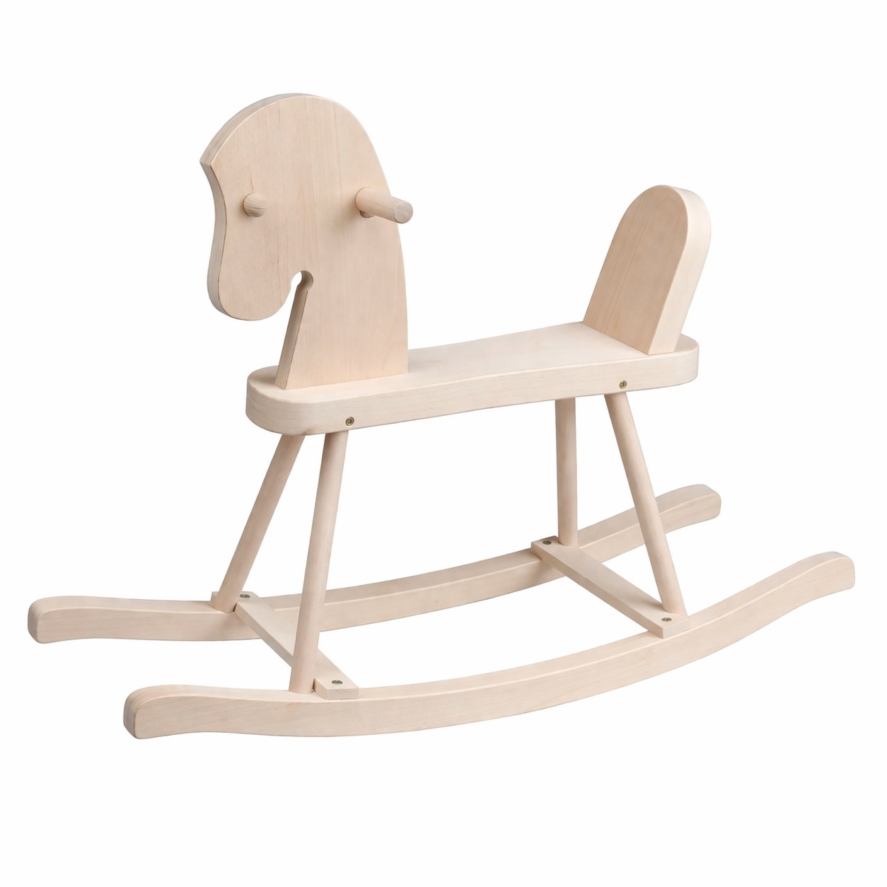 Koník je vyrobený z bukového a dubového dreva, vďaka čomu je mimoriadne pevný, stabilný a odolný. Profilované lišty zvyšujú bezpečnosť pri hojdání a poskytujú dieťaťu istotu a stabilitu pri prvých pohyboch.