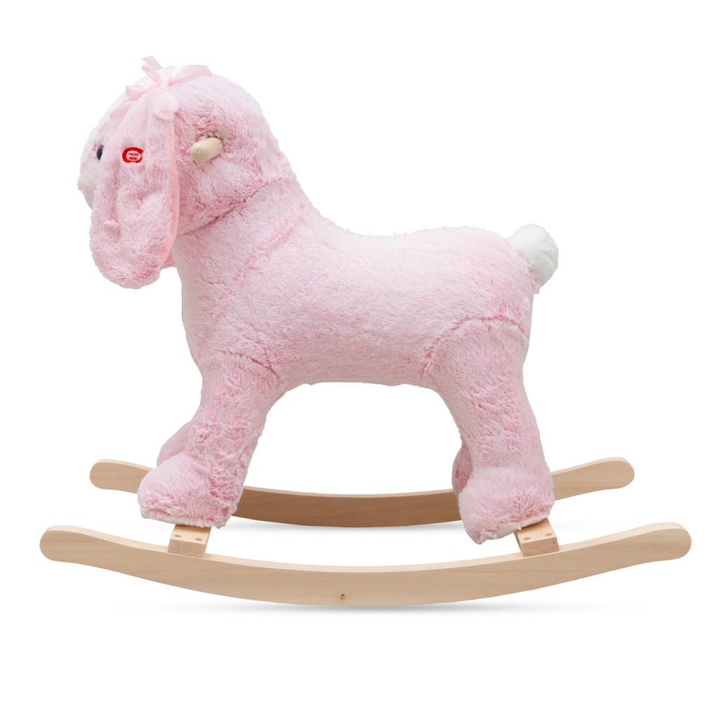 Stabilné drevené lyžiny a úchyty na držanie zaručujú bezpečné hojdanie, zatiaľ čo melódia aktivovaná stlačením rozvíja sluch a prináša deťom radosť. Zajačik má pohodlné sedadlo bez operadla – ideálny pre staršie deti, ktoré už vedia udržať rovnováhu.