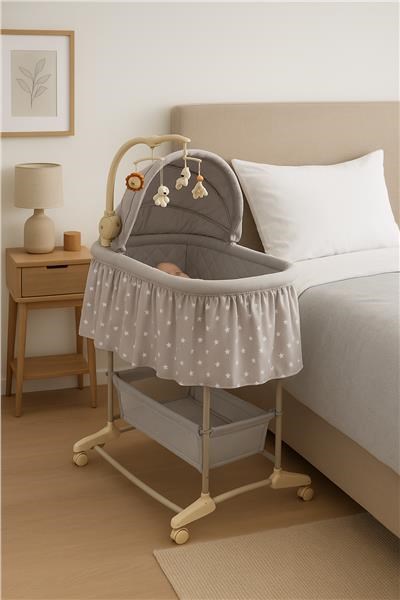 Multifunkčná detská kolíska New Baby je ideálnou voľbou ako pre deti, tak pre rodičov, pre ktorých je kľúčová funkčnosť a bezpečie. Výrobok slúži ako postieľka aj kolíska. Jej mobilita poskytuje obrovské pohodlie, pretože dieťa bude vždy v blízkosti svojich rodičov. Praktický kôš vám umožní mať všetko potrebné na dosah ruky a včas reagovať na potreby drobčeka bez toho, aby ste sa od neho museli vzďaľovať. Poťah kolísky je vyrobený z priedušného a príjemného na dotyk materiálu, ktorý je možné ľahko zložiť a vyprať. Kolotoč s farebnými zvieratkami je vybavený nočným svetlom, hudobným modulom s 8 melódiami a funkciou jemných vibrácií s možnosťou zmeny ich intenzity. Je napájaný 3 batériami AA LR6-1,5 V (nie sú súčasťou dodávky). Jednu zo strán postieľky je možné rozopnúť, čo oceníte počas každodennej a často aj nočnej starostlivosti o Vaše dieťatko.
