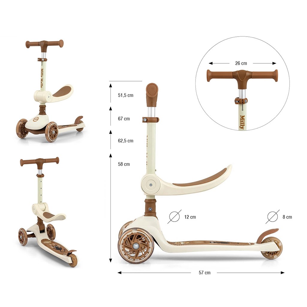Detská kolobežka FUZZY so sedadlom je ideálnou voľbou pre najmenšie deti, ktoré sa učia rovnováhe a pohybu. Kombinuje funkciu odrážadla a kolobežky, čím podporuje prirodzený vývoj dieťaťa, koordináciu aj stabilitu. Vďaka bezpečnej trojkolesovej konštrukcii a atraktívnemu dizajnu si ju obľúbia deti aj rodičia.