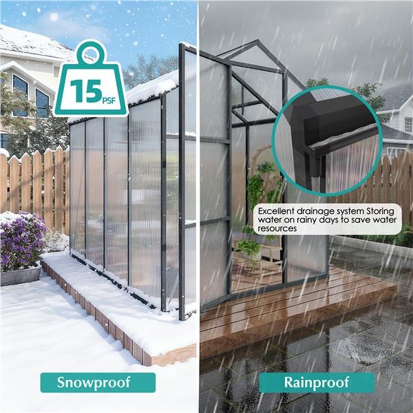 Záhradný skleník 183 × 244 cm polykarbonát, hliníkový rám