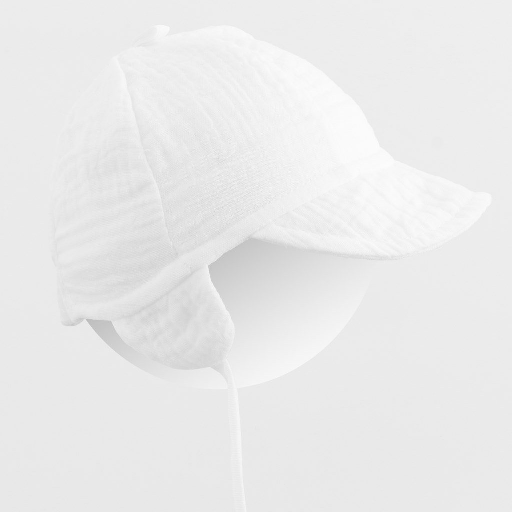 Detská letná mušelínová čiapka so šiltom New Baby biela