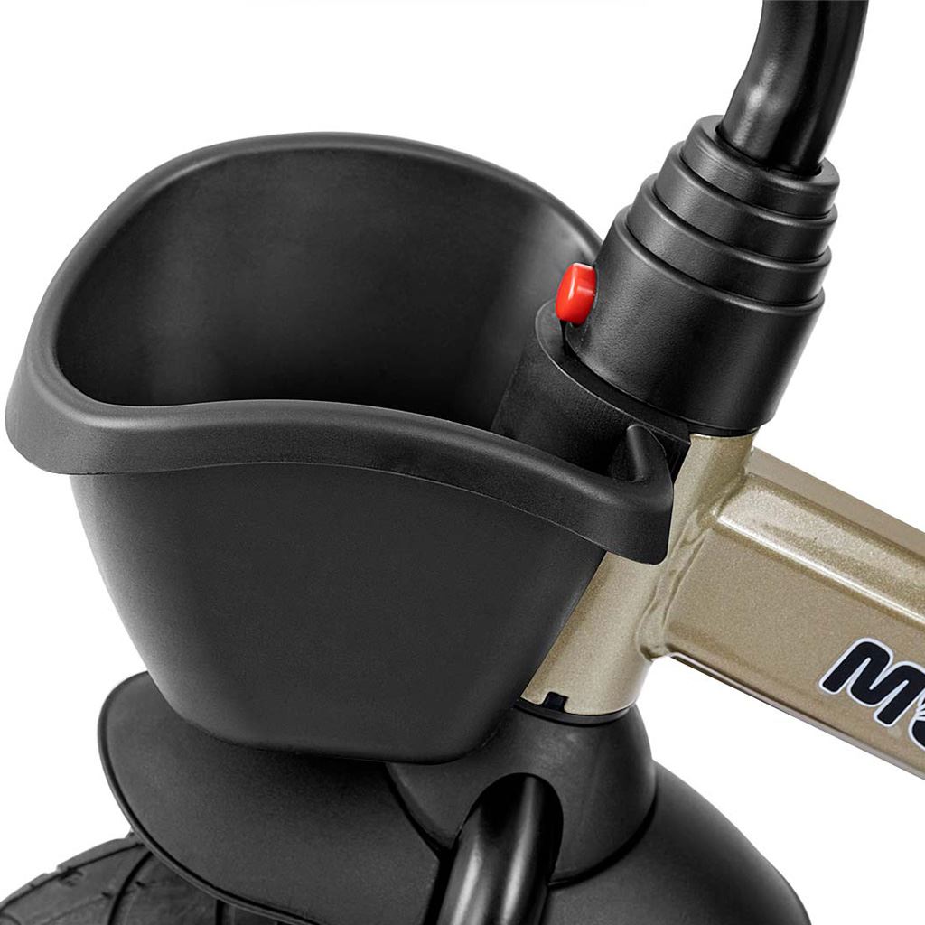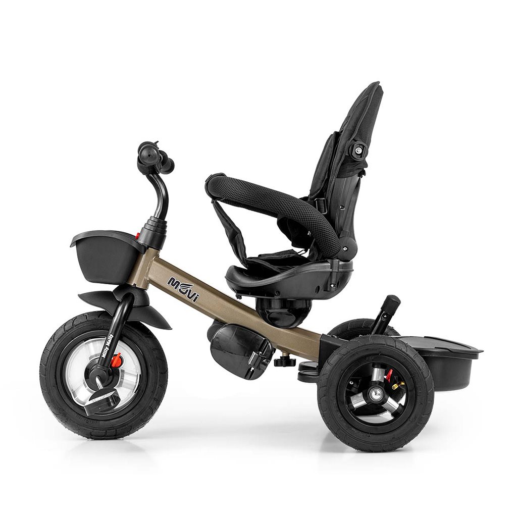 Je vyrobená z kvalitných a odolných materiálov. Má modernú konštrukciu, pohodlné a ergonomicky tvarované sedadlo, ktoré je otočné o 360 stupňov, čo umožní dieťaťu cestovať v smere alebo proti smeru jazdy. O pohodlie a bezpečie počas jazdy sa starajú bariérky, trojbodové bezpečnostné pásy, pohodlné stúpatka, alebo veľké nafukovacie kolesá, ktoré skvele absorbujú nárázy a poskytujú dobrú priľnavosť. Trojkolku môže ovládať ako dieťa, tak aj rodič pomocou nastaviteľnej rukoväte pre tlačenie. Po odobratí vodiacej tyče, sklápacej striešky, ktorá chráni pred slnkom alebo ostatných komponentov bude slúžiť ako trojkolka. Trojkolku je možné používať aj ako alternatívu golfového kočíka. Pre uloženie hračiek, alebo potrieb pre dieťa je tu praktický úložný košík.