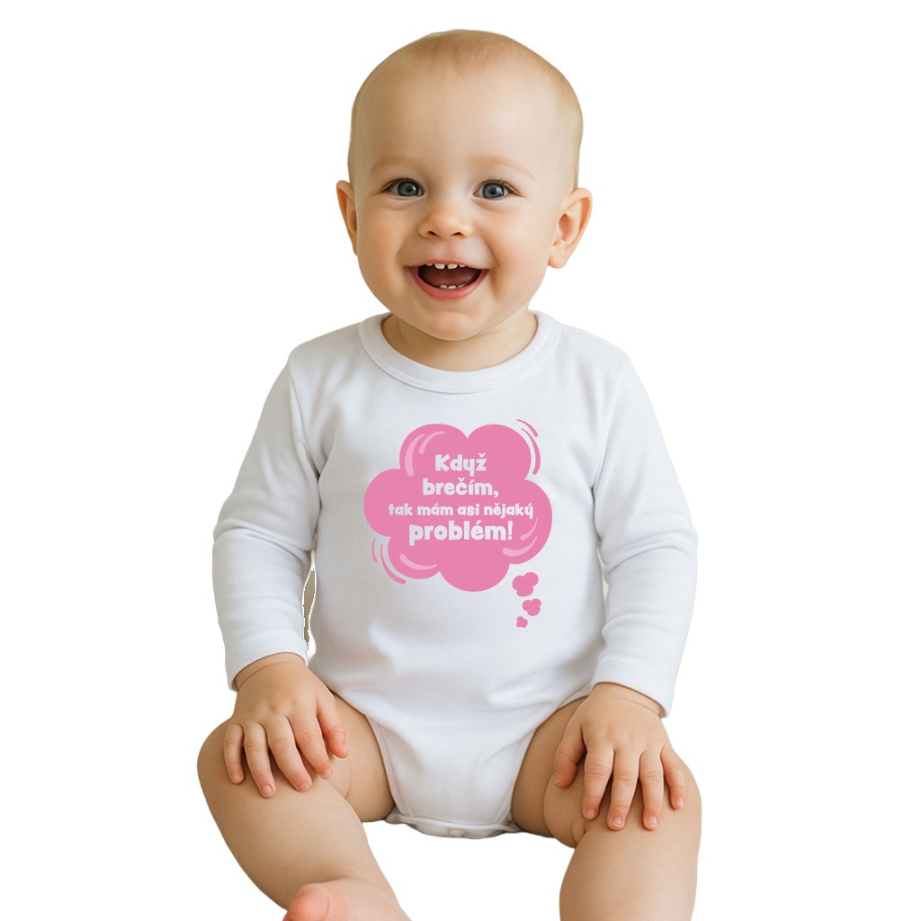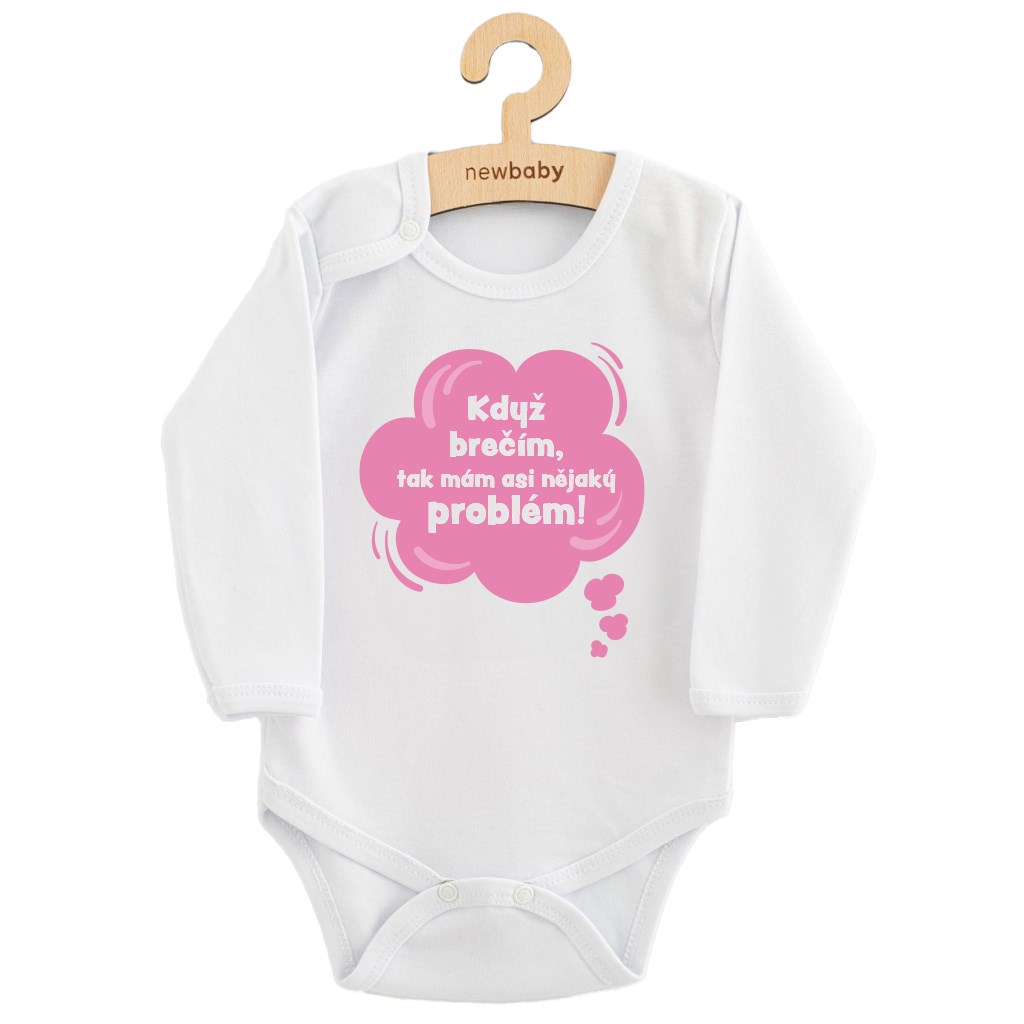 Detské body s potlačou New Baby Když brečím, tak mám asi nějaký problém! ružová