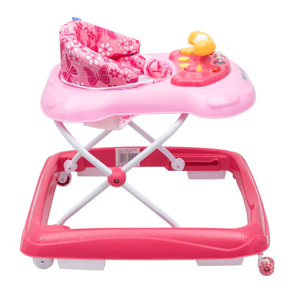 Multimediálne chodítko Baby Mix so silikónovými kolieskami. Chodítko je vybavené pohodlným ergonomicky tvarovaným sedadlom, ktoré zaisťuje správne držanie chrbtice. Multimediálny panel obsahuje rôzne svetelné efekty, trúbiaci volant, ktorým možno otáčať, tlačidlá pre prehrávanie melódií a dve svetlá. Krásne chodítko s hračkami očarí malých objaviteľov a umožní im hrať sa ešte dlhšie. Chodítko je vybavené špeciálnym systémom proti prevráteniu, ktorý zaistí Vášmu dieťaťu pohodlie a bezpečnosť.