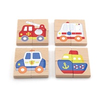 Každý obrázok sa skladá zo 4 blokov - skladačiek, ktoré po spojení vytvoria celý obrázok dopravného prostriedku a naučia dieťa priraďovať vzory. Ako bonus možno skladačku pripevniť na tabuľu a inšpirovať tak dieťa k nakresleniu vlastného vozidla.