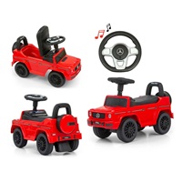 Detské odrážadlo MERCEDES G350d je vyrobené v licencii koncernu MERCEDES. Váš malý pretekár či pretekárka sa v ňom bude cítiť ako v naozajstnom džípe. Odrážadlo je vyrobené s dôrazom na každý detail a kvalitu použitých materiálov. Jeho vzhľad upúta pozornosť nielen každého dieťaťa, ale aj rodičov. Odrážadlo pomáha rozvíjať motorické schopnosti dieťaťa a Váš malý pretekár či pretekárka si s ním užije veľa zábavy a srandy. Autíčko má na trojramennom volante tlačidla vydávajúce rôzne melódie, zvuk motora alebo húkačku. Je určené ako pre najmenšie deti, ktoré už vedia sedieť, tak aj pre deti, ktoré sa už naučili chodiť. Odrážadlo má otočné predné kolesá a široké a komfortné sedadlo s úložným priestorom. Batérie nie sú súčasťou balenia (2x AA 1.5V).