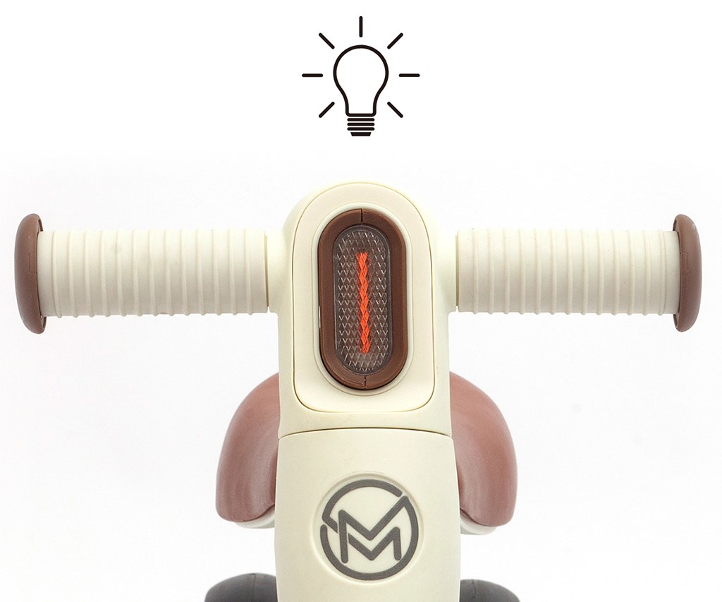 LED svetlo zabudované v riadidlách (2× AAA/LR03 – nie sú súčasťou balenia) dodáva jazde hravý efekt a motivuje dieťa k pohybu. Odrážadlo je vhodné na použitie doma aj vonku na rovnom povrchu.