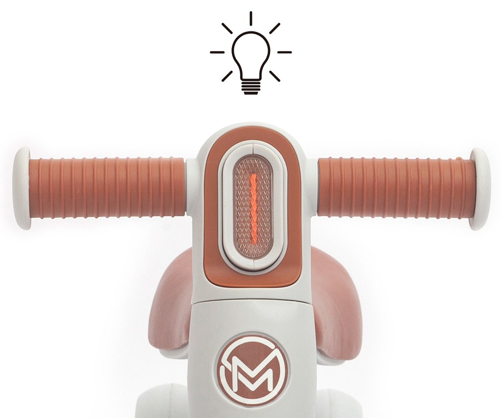 LED svetlo zabudované v riadidlách (2× AAA/LR03 – nie sú súčasťou balenia) dodáva jazde hravý efekt a motivuje dieťa k pohybu. Odrážadlo je vhodné na použitie doma aj vonku na rovnom povrchu.
