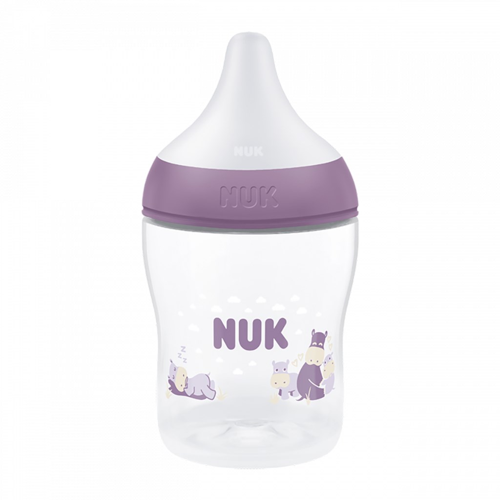 Dojčenská fľaša NUK Perfect Match s kontrolou teploty a mäkkým silikónovým cumlíkom. Špeciálny tvar typický pre cumlíky NUK s ortodontickým antikolikovým cumlíkom je modelovaný podľa materskej bradavky pri dojčení. Ponecháva dostatok priestoru pre prirodzené sacie pohyby jazyka aj čeľuste. Veľká, široká opora pier pri pití pripomína matkinu pokožku. Fľaša je navrhnutá tak, aby bábätko neprišlo do kontaktu s pevnými plastovými časťami. Vylepšený systém proti prehĺtaniu vzduchu pri pití Anti Colic Air System zabezpečuje prirodzený tok mlieka, aby dieťa pilo uvoľnene bez prehĺtania vzduchu. Hladko sa zužujúci tvar s antikolikovou funkciou pre plynulý a nerušený prietok pitia, veľkosť S (od narodenia, pre materské mlieko, čaj alebo vodu). Dojčenské fľaše sú teraz vybavené novým NUK kontrolným ukazovateľom teploty, ktorý pomáha zabrániť tomu, aby vaše dieťa pilo príliš horúci príkrm. Ukazovateľ vyzerá ako teplomer, je umiestnený medzi ryskami a teplota obsahu fľaše zmení jeho farbu. Ak je príkrm príliš horúci, modrý ukazovateľ sa zmení na biely. V ideálnom prípade by mal príkrm mať telesnú teplotu (37 °C), čo zodpovedá modrému zafarbeniu displeja. Vyrobená z vysoko kvalitného nerozbitného plastu polypropylénu a neobsahuje BPA (Bisfenol A). Obsah fľaše 150 ml. Vhodná pre deti od narodenia, veľkosť S (malý otvor = pre materské mlieko, vodu, čaj). Klinicky testované.