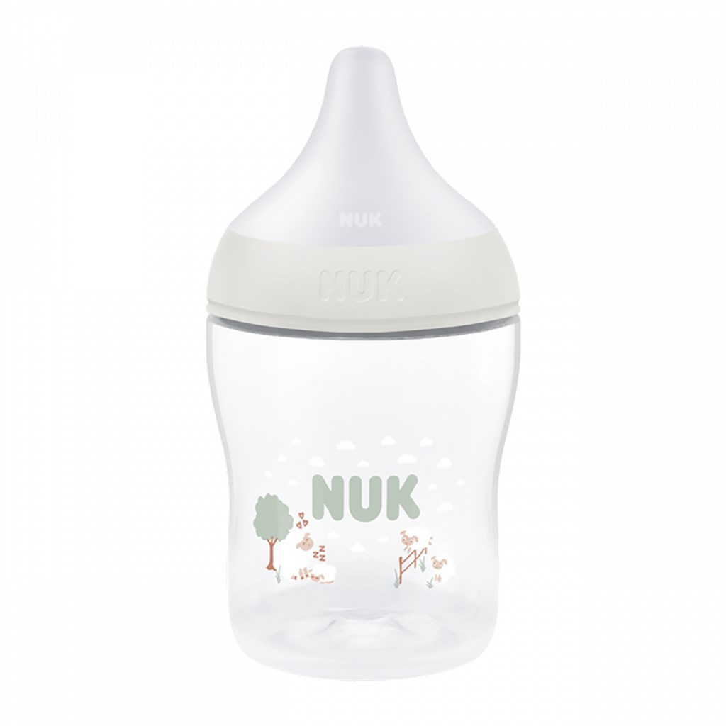 Dojčenská fľaša NUK Perfect Match s kontrolou teploty a mäkkým silikónovým cumlíkom. Špeciálny tvar typický pre cumlíky NUK s ortodontickým antikolikovým cumlíkom je modelovaný podľa materskej bradavky pri dojčení. Ponecháva dostatok priestoru pre prirodzené sacie pohyby jazyka aj čeľuste. Veľká, široká opora pier pri pití pripomína matkinu pokožku. Fľaša je navrhnutá tak, aby bábätko neprišlo do kontaktu s pevnými plastovými časťami. Vylepšený systém proti prehĺtaniu vzduchu pri pití Anti Colic Air System zabezpečuje prirodzený tok mlieka, aby dieťa pilo uvoľnene bez prehĺtania vzduchu. Hladko sa zužujúci tvar s antikolikovou funkciou pre plynulý a nerušený prietok pitia, veľkosť S (od narodenia, pre materské mlieko, čaj alebo vodu). Dojčenské fľaše sú teraz vybavené novým NUK kontrolným ukazovateľom teploty, ktorý pomáha zabrániť tomu, aby vaše dieťa pilo príliš horúci príkrm. Ukazovateľ vyzerá ako teplomer, je umiestnený medzi ryskami a teplota obsahu fľaše zmení jeho farbu. Ak je príkrm príliš horúci, modrý ukazovateľ sa zmení na biely. V ideálnom prípade by mal príkrm mať telesnú teplotu (37 °C), čo zodpovedá modrému zafarbeniu displeja. Vyrobená z vysoko kvalitného nerozbitného plastu polypropylénu a neobsahuje BPA (Bisfenol A). Obsah fľaše 150 ml. Vhodná pre deti od narodenia, veľkosť S (malý otvor = pre materské mlieko, vodu, čaj). Klinicky testované.