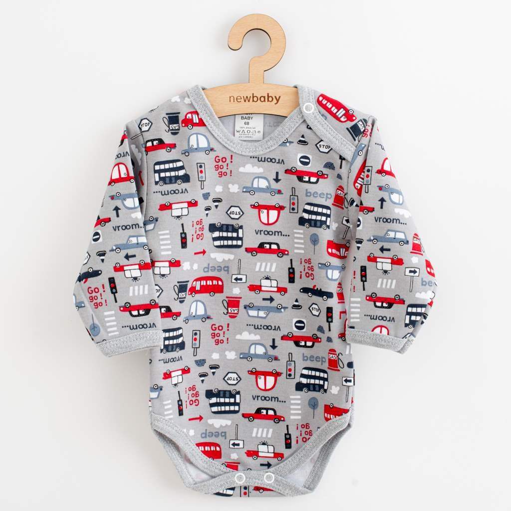 Originálne a nápadité bavlnené dojčenské body s dlhým rukávom New Baby z kolekcie Go!go!go! Body zdobí potlač autíčiek. Veľmi príjemný, mäkký a kvalitný materiál, ktorý je vhodný pre bábätká. Zapínanie na cvočky na ramienku a medzi nožičkami uľahčí obliekanie a prebaľovanie. Zloženie: 100% bavlna. Do kolekcie Go!go!go! patrí: body s krátkym rukávom, tričko s krátkym rukávom, tepláčky, čiapočka a kraťasy.