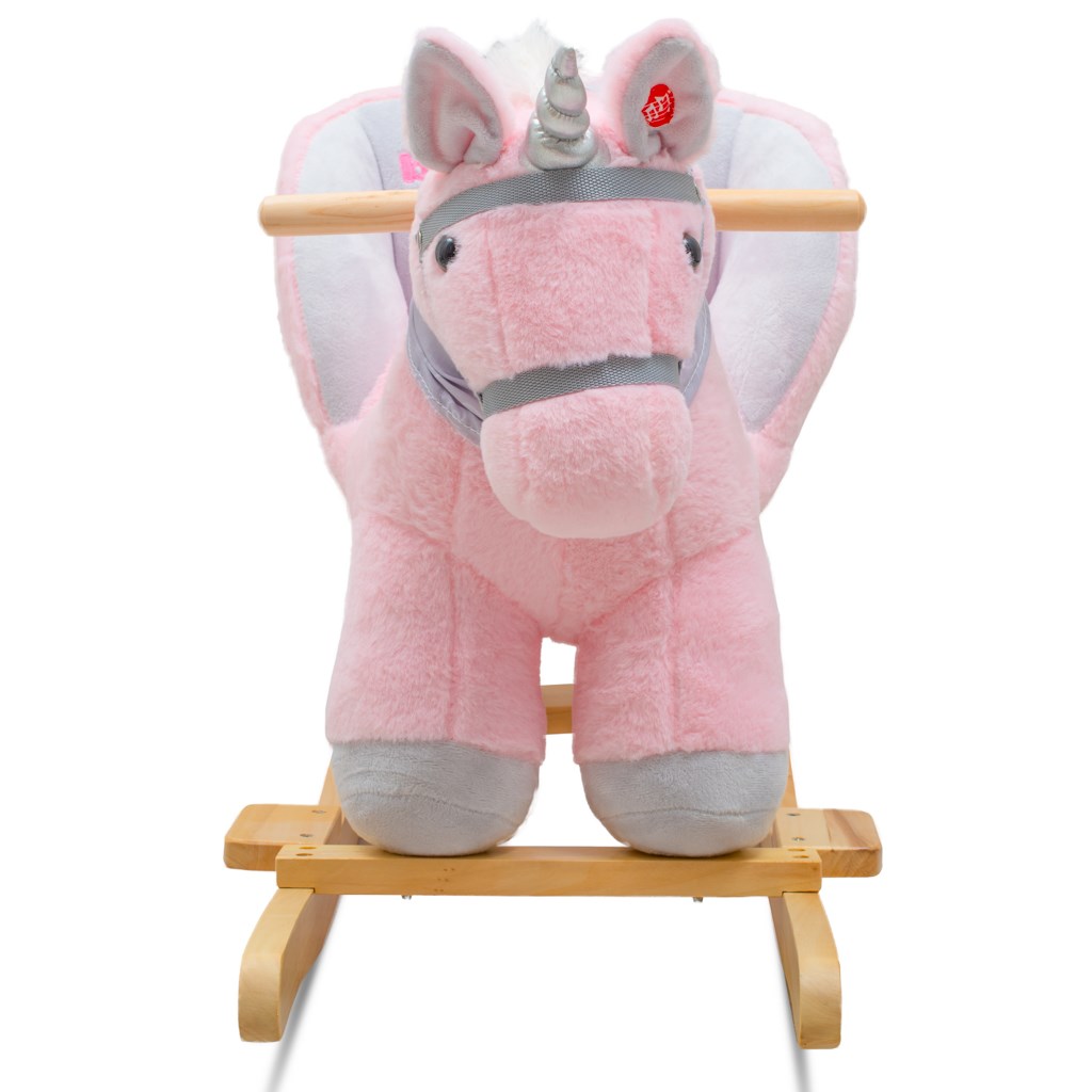 Ružový hojdací koník–jednorožec značky Baby Mix je výnimočná hračka, ktorá nadchne každé dieťa a stane sa jeho najlepším spoločníkom pri hre. Vyrobený je z mäkkého, na dotyk príjemného plyšu a osadený na stabilných drevených lyžinách, čo zaručuje bezpečnú a pohodlnú zábavu.