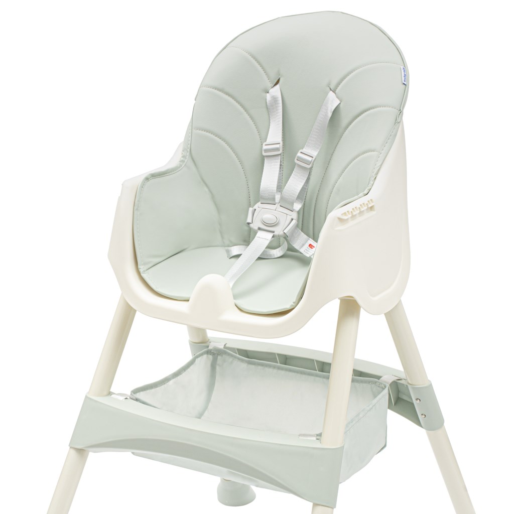Vďaka 5-bodovému pásu bude vaše dieťa v bezpečí a opierka nôh bude pohodlná. Poťah možno kedykoľvek vyčistiť vlhkou handričkou. Jedálenská stolička možno ľahko premeniť na nízku stoličku odstránením spodnej časti nôh. Textilný košík je dostatočne priestranný na uloženie nevyhnutných vecí, ako sú vlhčené obrúsky, látkové plienky alebo obľúbené malé hračky. Protišmykové nožičky zabraňujú náhodnému prevráteniu stoličky. Jedálenská stolička Baby Mix možno používať aj ako vysokú stoličku.
