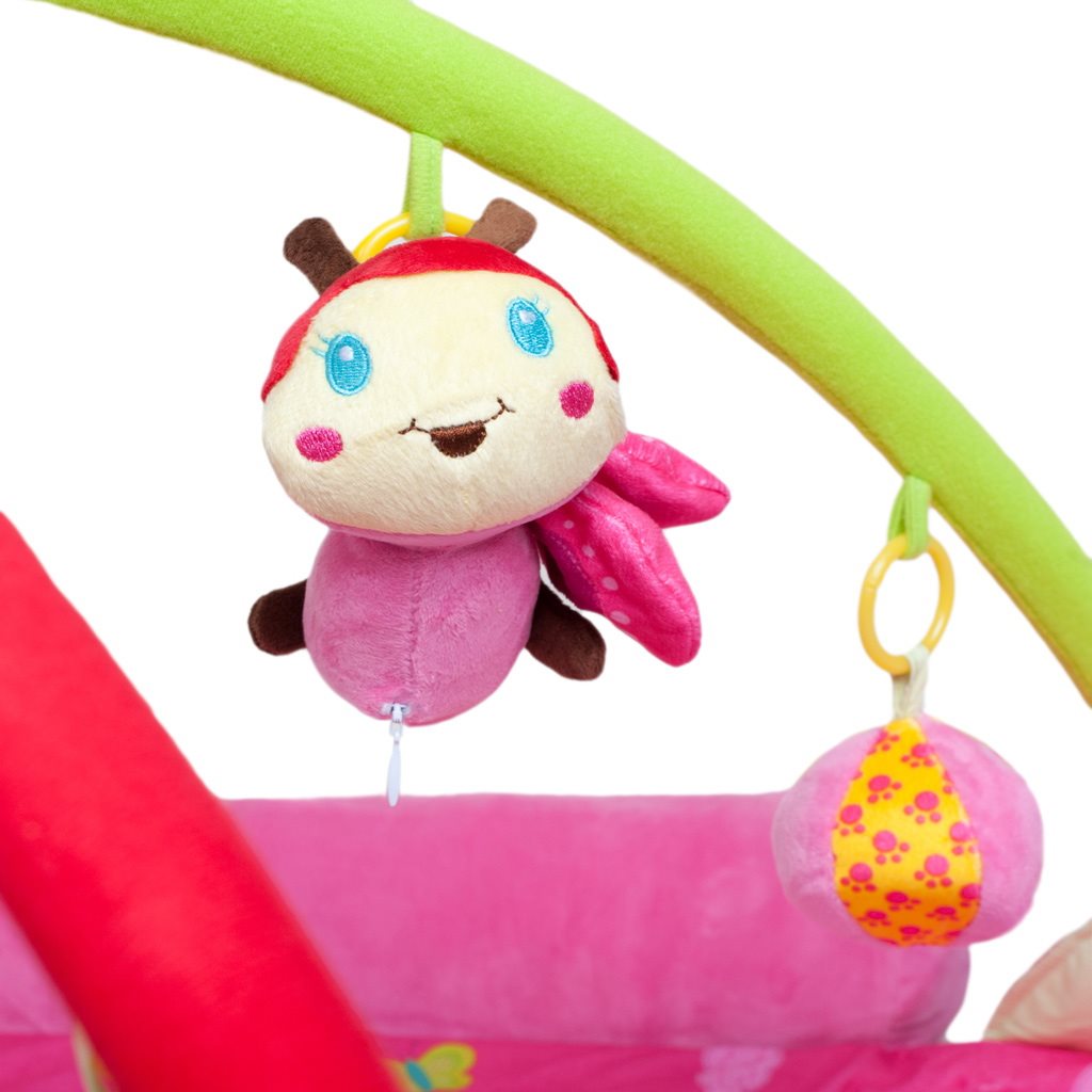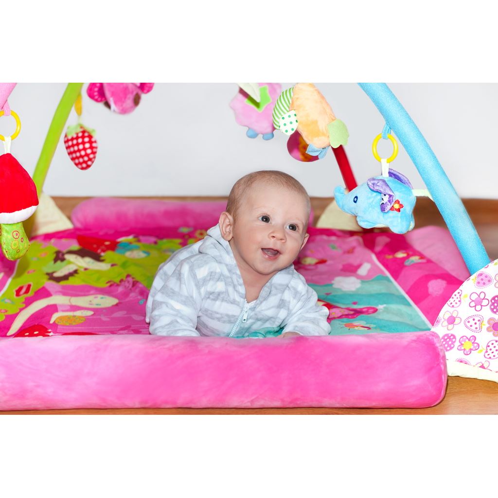 Krásna luxusná originálna vzdelávacia hracia deka s melódiou PlayTo s hrazdou rozvíja detskú predstavivosť vďaka spoznávaniu farieb a tvarov. Hracia deka v krásnej žiarivej farbe s motívom rôznych zvieratiek. Rozvíja zmysly hmatu, zraku aj sluchu vďaka šuštiacim a pohyblivým častiam. V papagájovi je ukrytý hrací modul, ktorý po stlačení vydáva vtáčie zvuky a motýlik s hracím modulom, ktorý po stlačení hrá melódiu. Príjemný a mäkký materiál umožňuje pohodlné ležanie na brušku alebo chrbte a umožňuje slobodu pohybu Vášho dieťaťa. Bábätko tak môže získať bezpečný útulnejší priestor a motivuje na dvíhanie sa dieťatka. Hračky je možné z hrazdičky ľahko zložiť. Vhodné pre deti od 3 mesiacov. Rozmery: cca 128x118 cm. Výška: cca 50 cm.