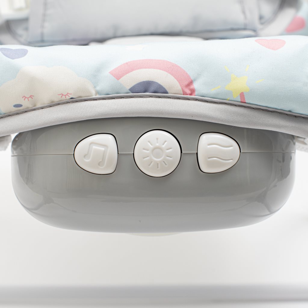 Môžete v ňom bábätko uložiť ku krátkemu spánku, stačí iba operadlo sklopiť, zapnúť bezpečnostné pásy, zapnúť funkciu jemných vibrácií a namontovať držiak s hračkami. Staršie deti v ňom môžu sedieť, hojdať sa, prezerať si knižky alebo si kresliť.