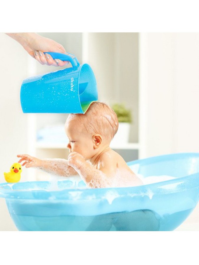 Veľmi praktická nádobka na umývanie vlasov pre deti a bábätká. Elastický okraj nádobky umožňuje bezpečné opláchnutie vlasov - do očí dieťaťa sa nič nedostane. Nádobka má veľmi jednoduché použitie, dve komory umožňujú dôkladné opláchnutie celej hlavy. Vhodné pre deti od narozenia. Neobsahuje BPA.