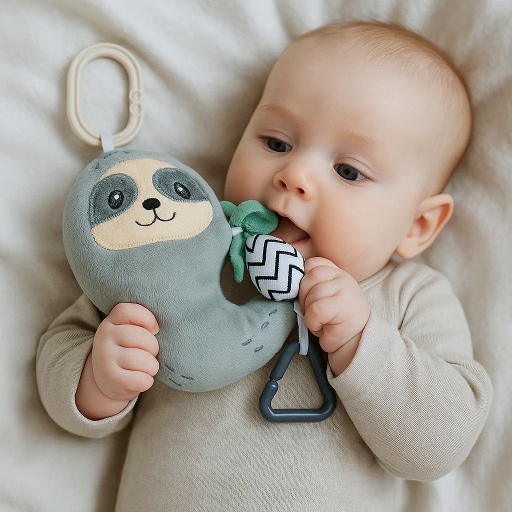 Predstavujeme hračku z kolekcie Sloth New Baby, ktorá vaše dieťatko zabaví na cestách aj kdekoľvek inde. Táto praktická hračka kombinuje funkcie vibrácií, hryzátka a hrkálky a poskytuje tak dokonalú zábavu pre najmenších.